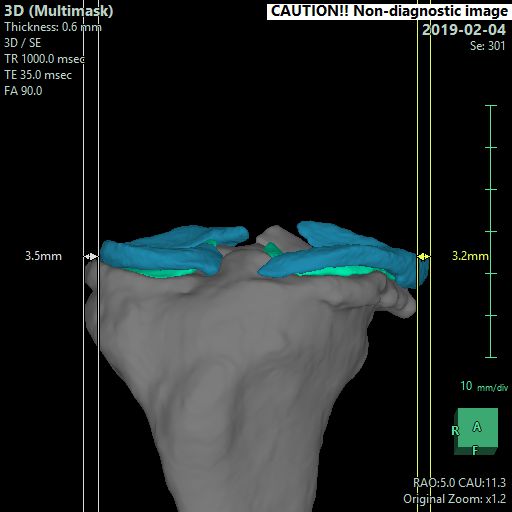 • - MR image를 사용하여 Bone, Meniscus 및 Cartilage를 자동으로 추출할 수 있습니다.