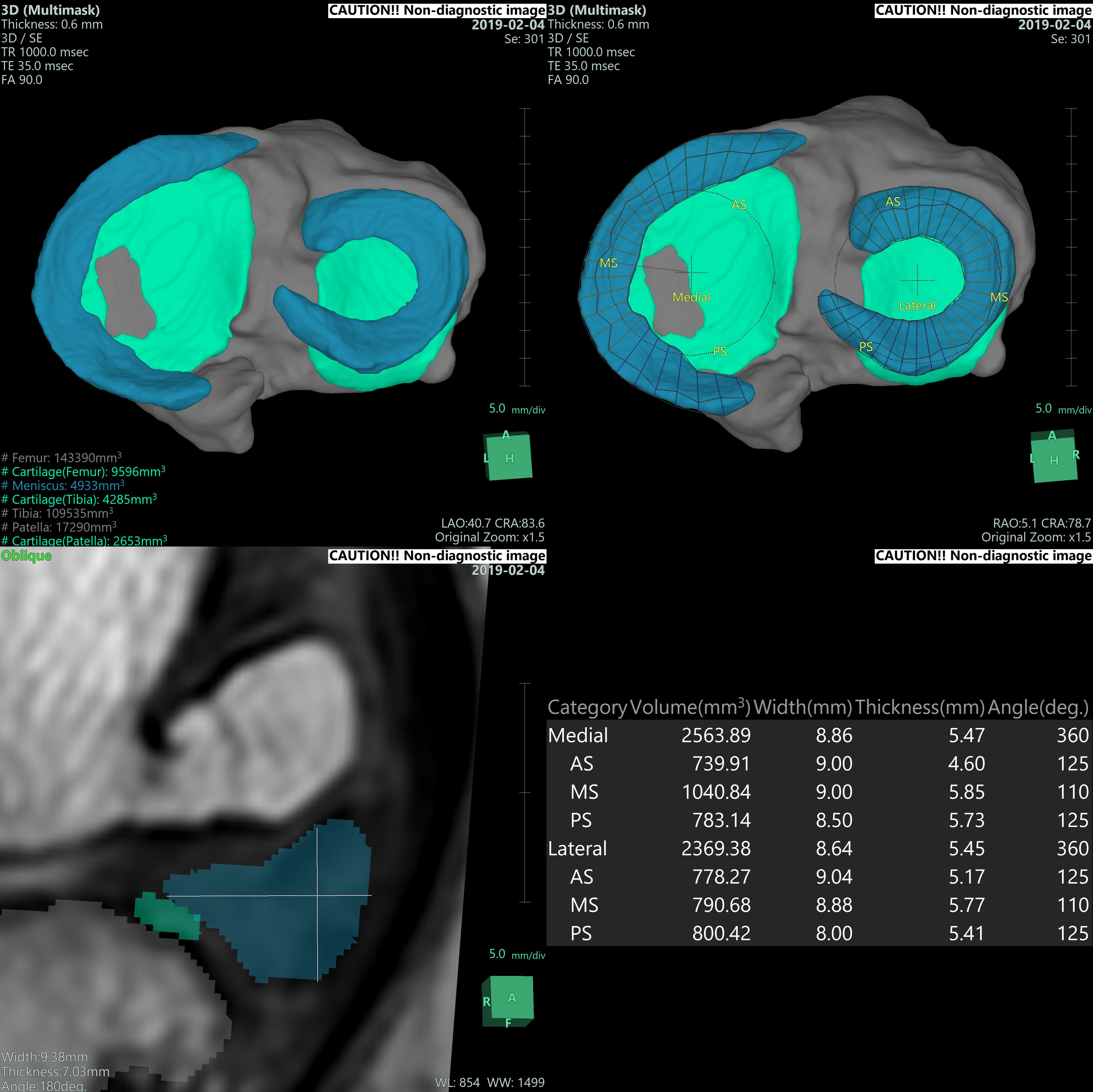 • - Caltilage와 Meniscus의 두께 등을 분석할 수 있습니다.