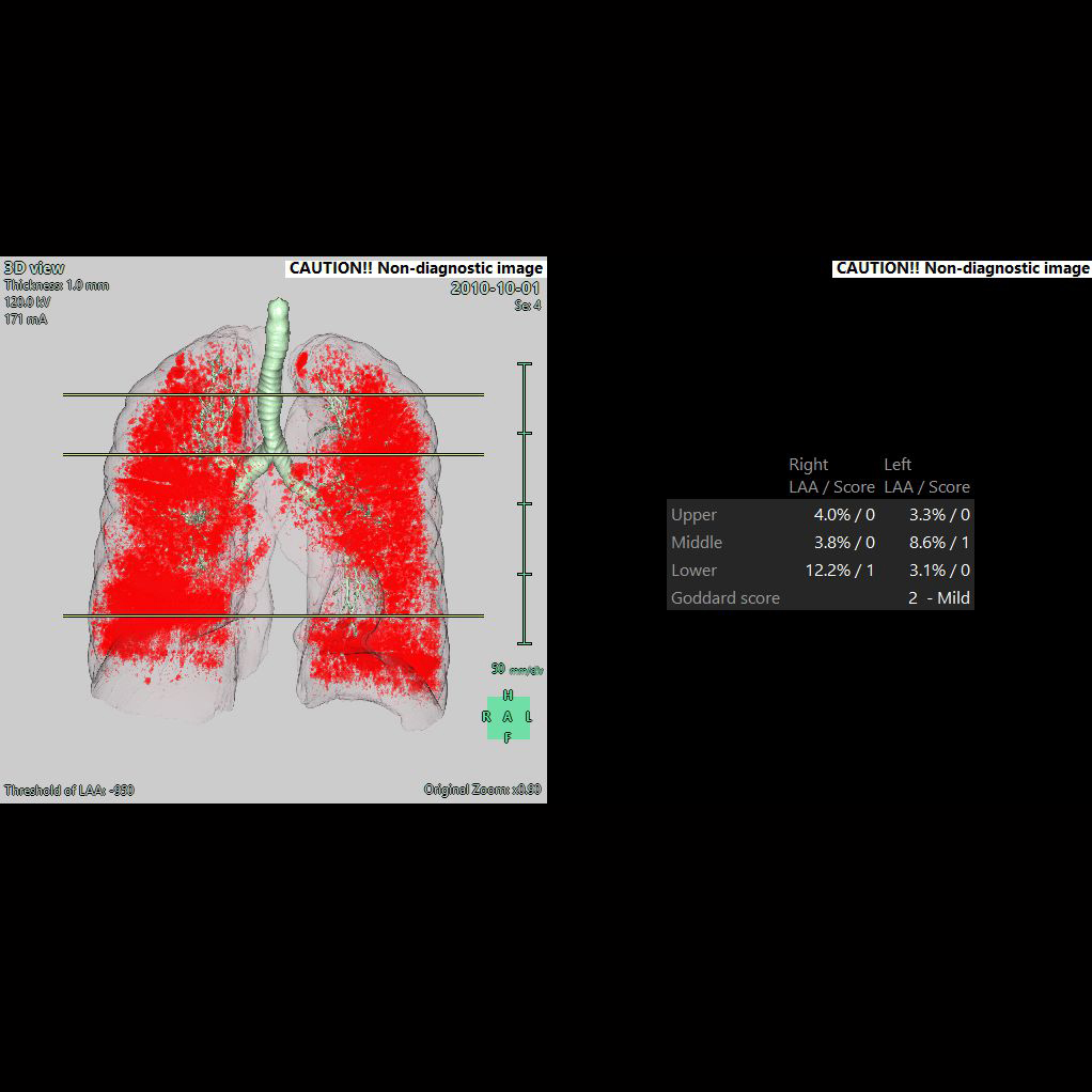 • - CT image에서 Airway, Lung field의 Low attenuation area를 분석할 수 있습니다.