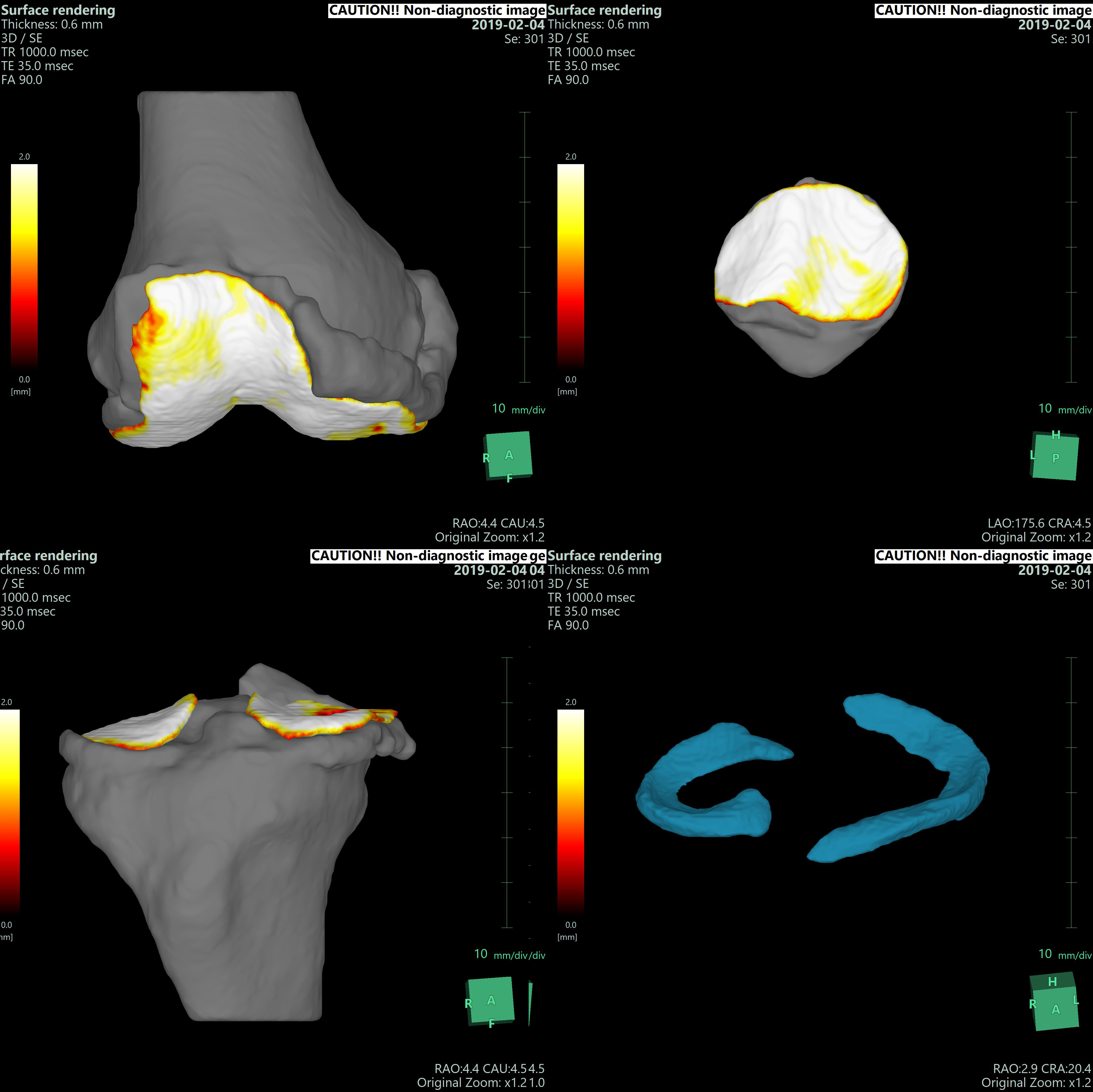 • - MR image를 사용하여 Bone, Meniscus 및 Cartilage를 자동으로 추출할 수 있습니다.