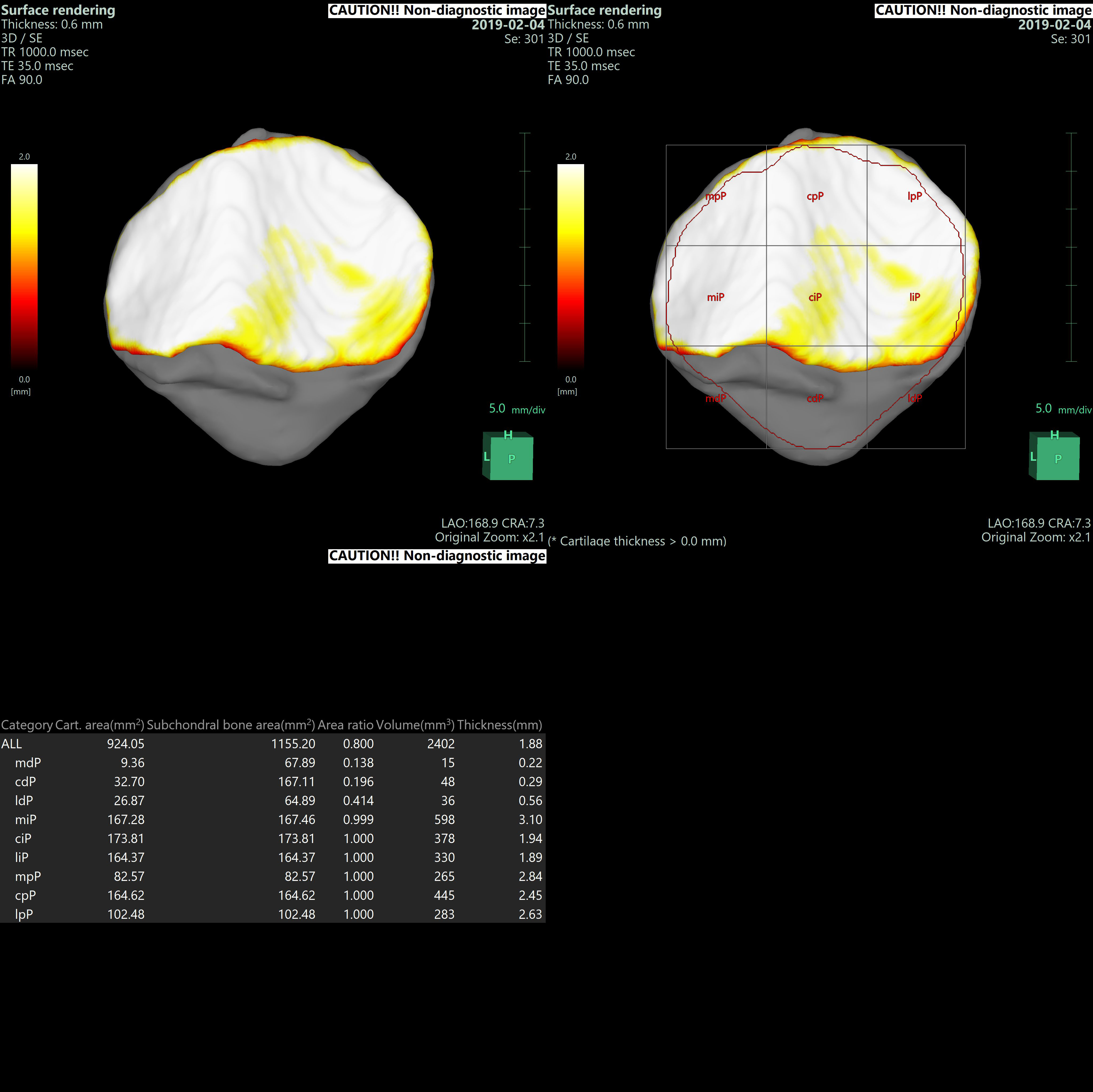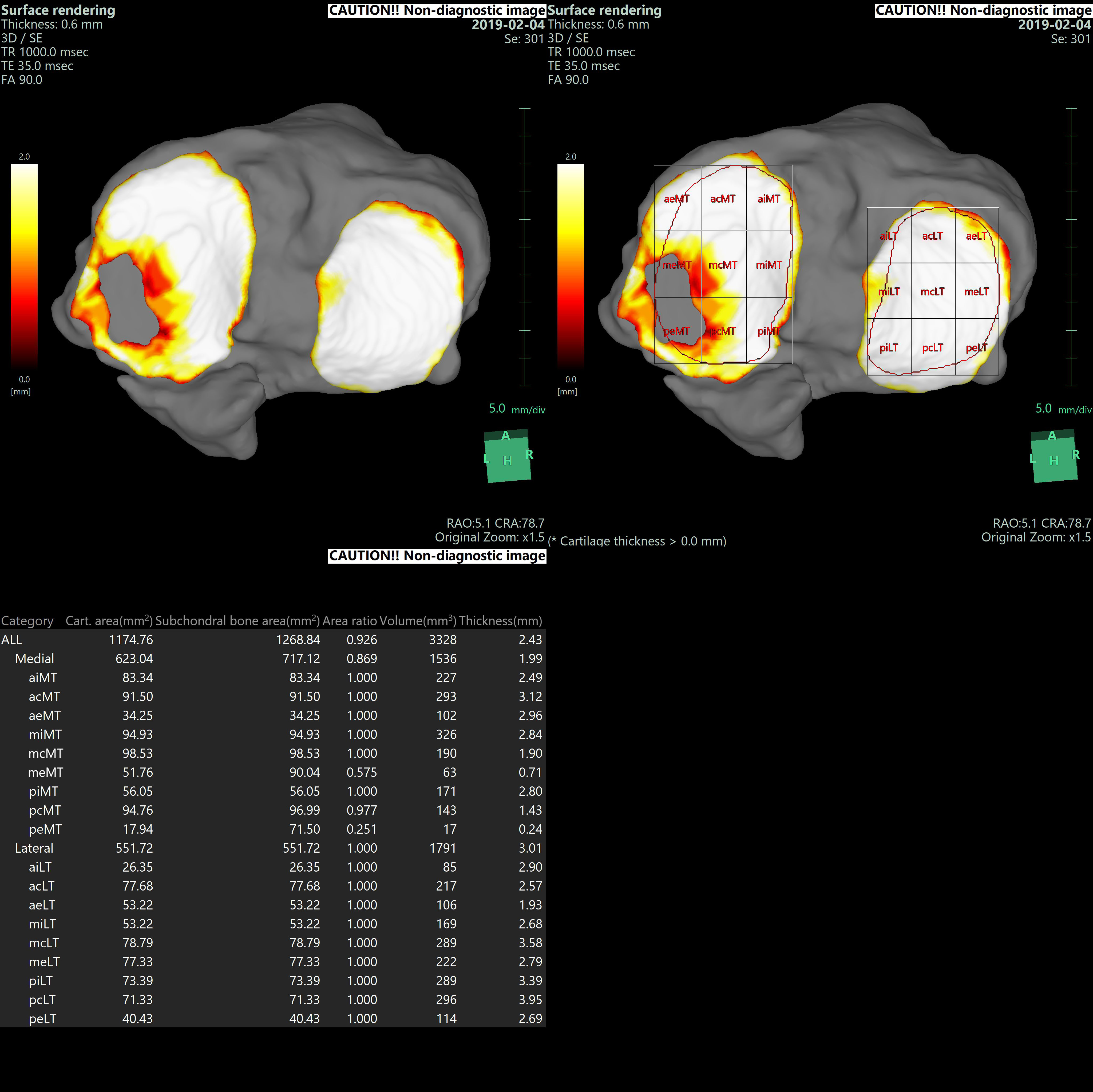 • - Caltilage와 Meniscus의 두께 등을 분석할 수 있습니다.