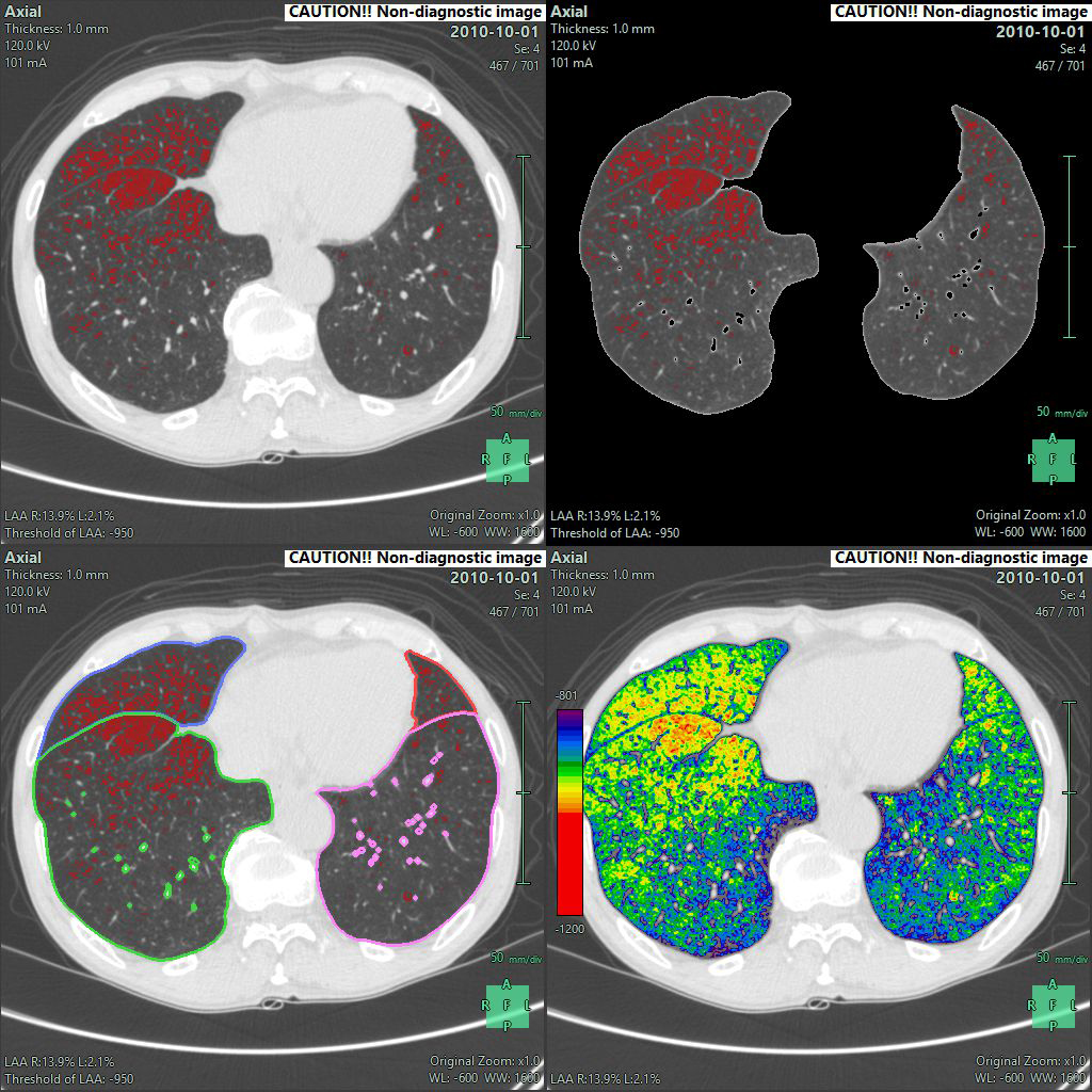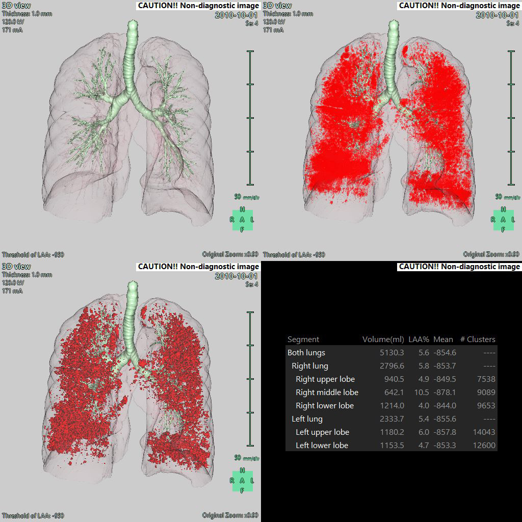 • - CT image에서 Airway, Lung field의 Low attenuation area를 분석할 수 있습니다.
