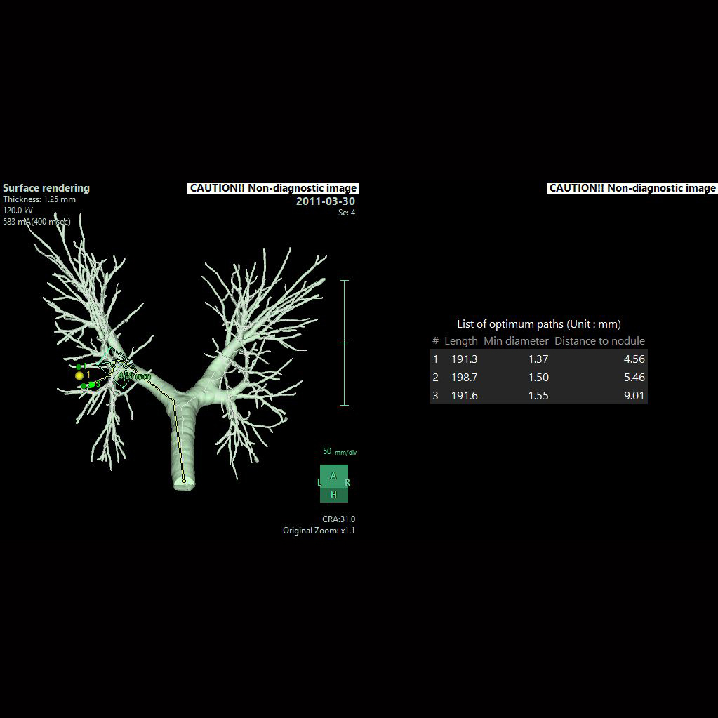 • - CT image를 사용하여 nodule까지의 path를 구성하고 관찰할 수 있습니다.
