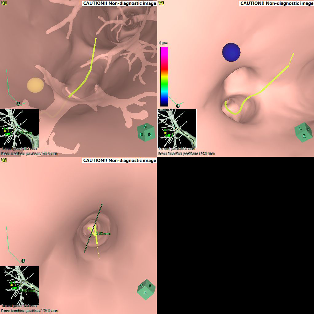 • - Bronchus의 직경 End-point부터 Nodule 까지의 거리 등을 확인하며 가상 내시경을 진행할 수 있습니다.